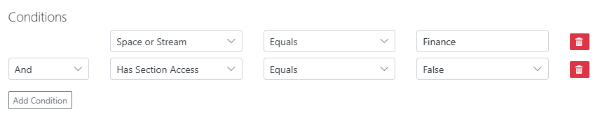 - Apps in the Finance stream should have Section Access enabled?